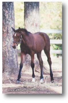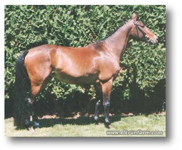 Peacemaker -- 2001 Bay Hanoverian Colt by Pablito out of a Donnerkeil/TB mare (dam's sire Donnerkeil has proven himself in 3 day Eventing as well as Dressage. His offspring are known for their willing temperaments.) Pablito has produced show winners in Germany as well as the US. He has already produced Hanoverian inspection champions, premium foals, breed show winners. At his 100 day test in Adelheidsdorf, Pablito scored 8's for character, temperament, and willingness to work and ability to work. As a 4 yr. old he won several stallion jumping competitions in Germany. SOLD! This horse is consigned to Elk Run Farm |