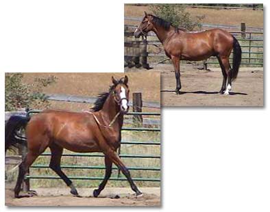 2006 filly by Amorex out of Ladyhawk by Lynx. Wonderful well built bay filly with a large star -- very leggy with beautiful joints and big soulful eyes. She is like she has springs under her. She moves right along with her athletic mother who was both a hunter and dressage horse. SOLD |