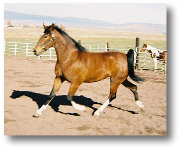 2005 Registered 16.1 Hanoverian gelding by Graf Top II, out of Winter Fox (Walter Scott). Born 3/25/05. Bay with one white sock and blaze. Wonderful mover -- very athletic. Just started on the lunge line. SALE Pending |